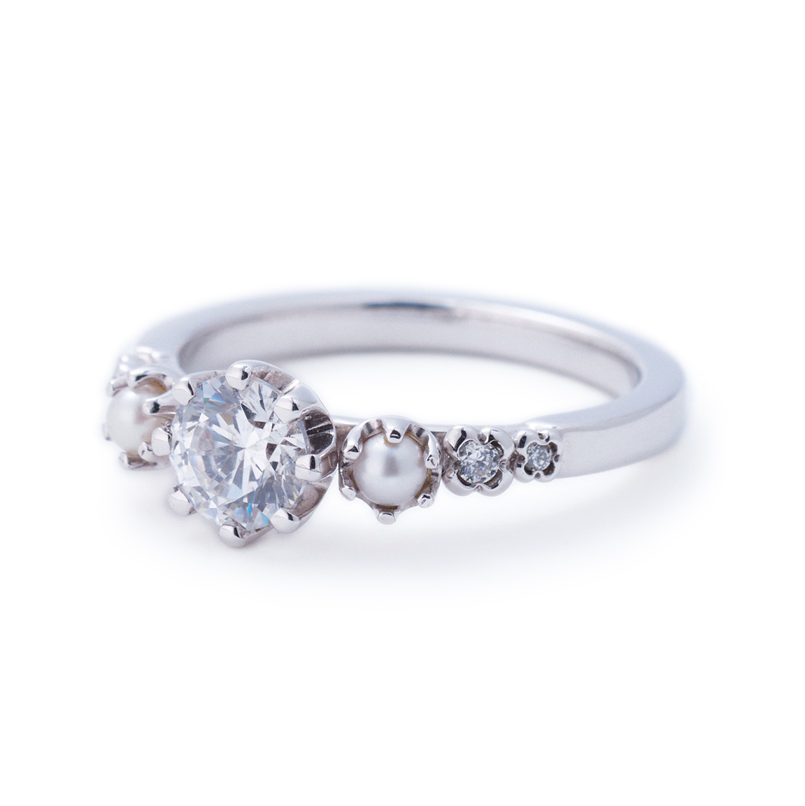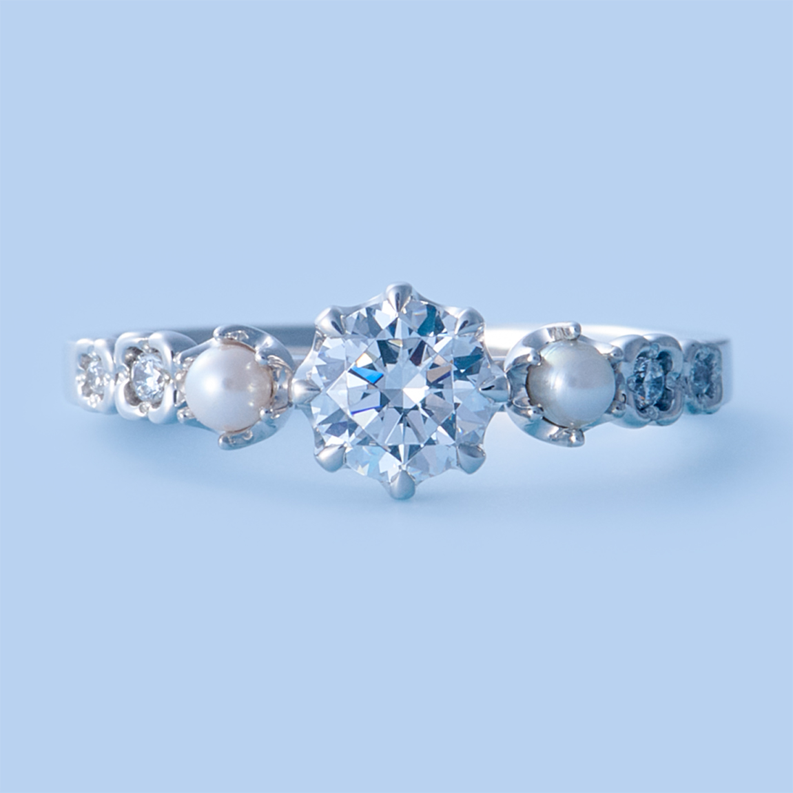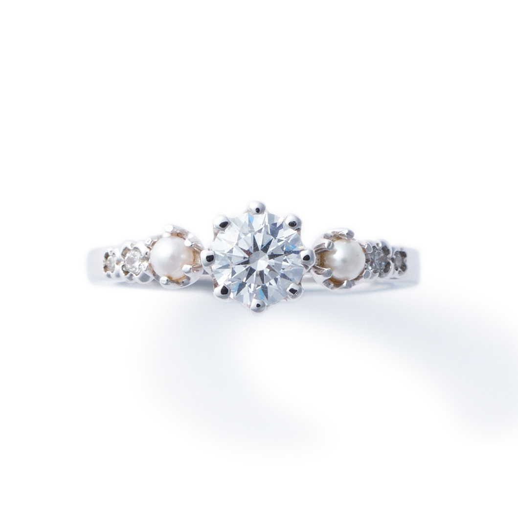 This engagement ring, featuring a 0.5-carat diamond and Akoya pearl, expresses refined playfulness. A delicate floral-shaped setting paired with premium materials creates an eye-catching presence on the hand. Designed with the motif of a flower crown, it carries the wish to beautifully celebrate life’s most special moments.