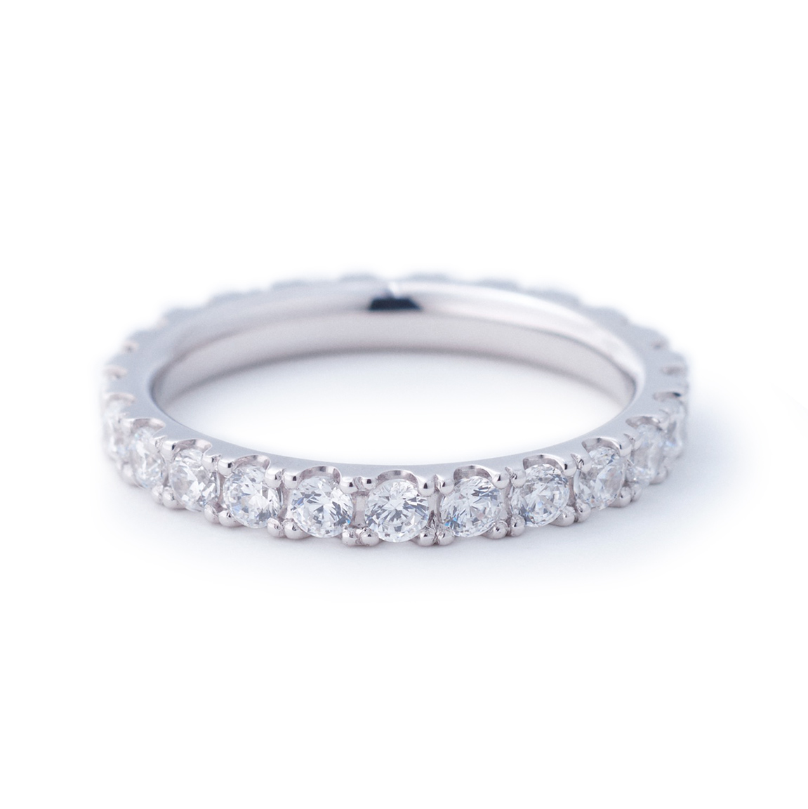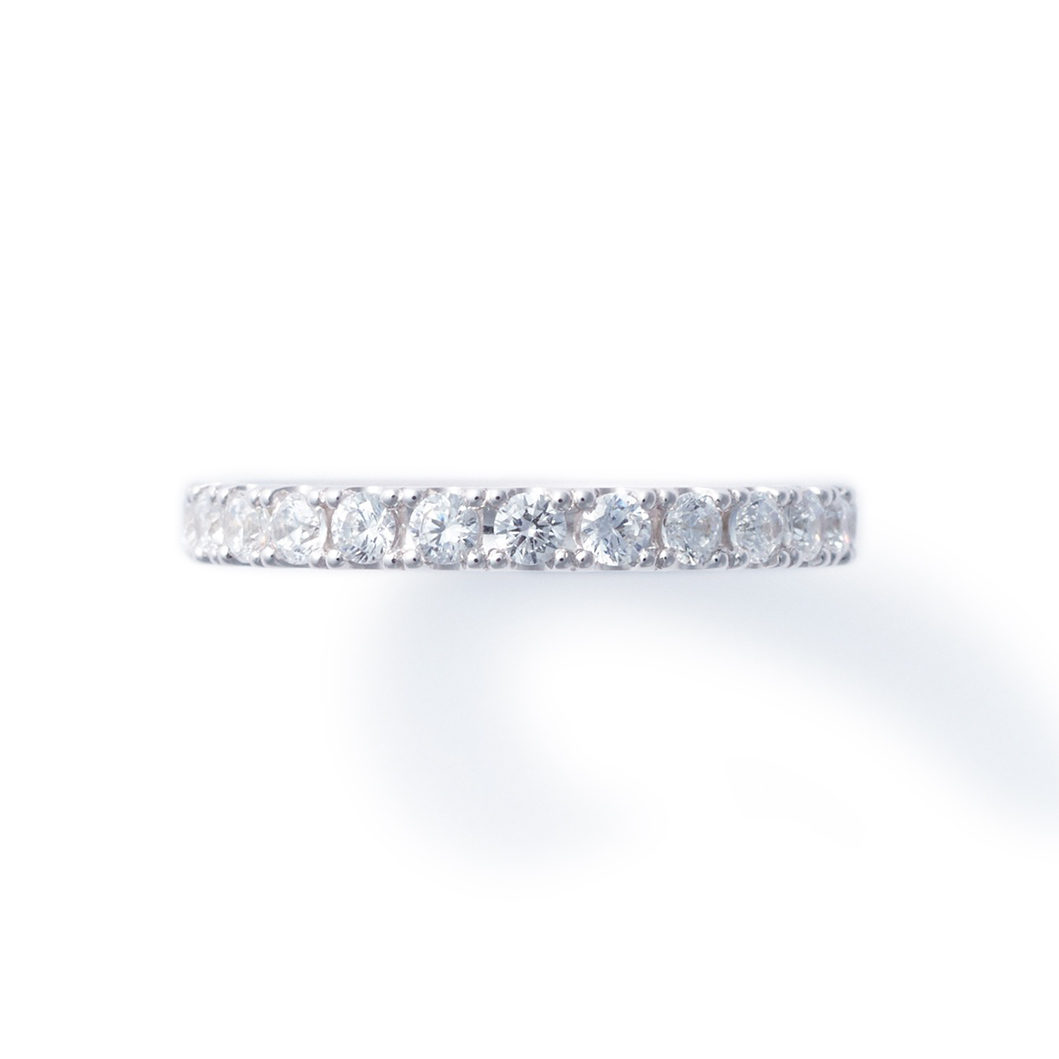 This full eternity ring, named after the Italian word for "eclipse," evokes the image of the sun and moon perfectly overlapping. Viewed from the side, the diamonds sparkle like a beautiful crown. Due is tailored with a ring width of 2.5mm for a moderate presence.