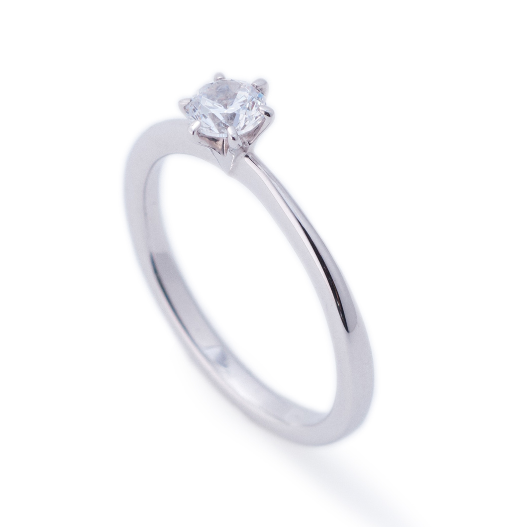The shape of this engagement ring is based on the image of a blooming lily, with the mount gently encircling the diamond. By smoothen between the ring shank and the mount, the diamond is made to stand out even more.