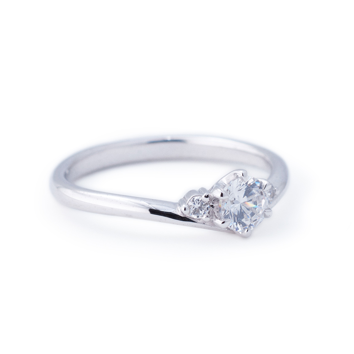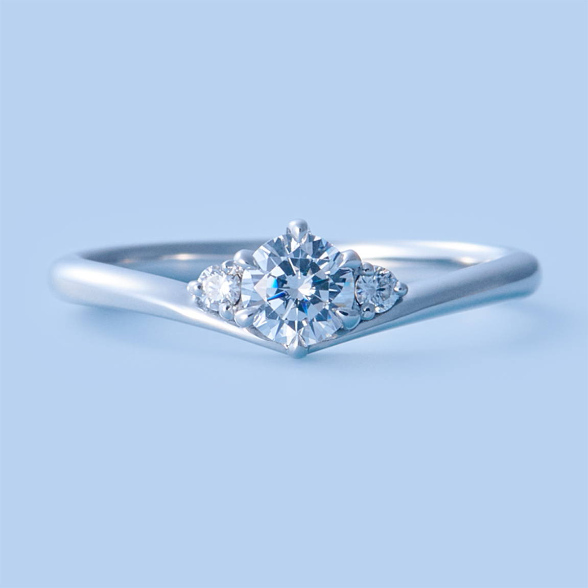 This engagement ring has a graceful V-shape shank design that resembles an elegant tiara. The delicate silhouette and lovely diamond setting give it a lovely impression.