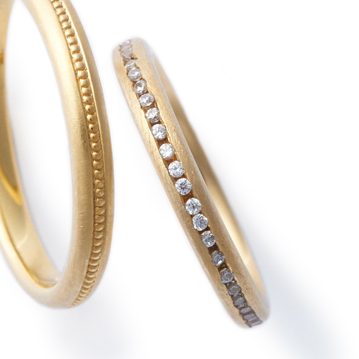 Casual wedding rings that blend into everyday life with a touch of antiquity.