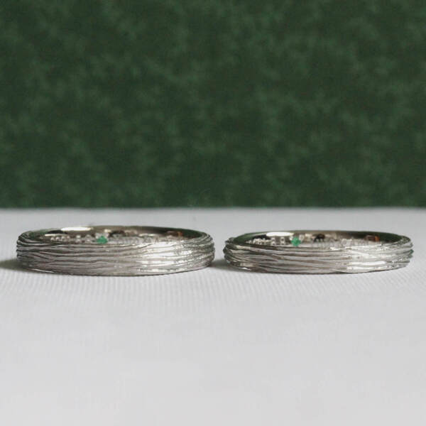 True to its name, which means "forest" in Italian, this wedding ring embodies the unadorned beauty of naturally growing trees, expressed through organic engraving patterns.