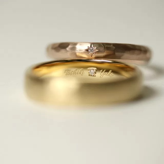 Two diamonds born from the same rough, shining separately in each ring — a truly one-of-a-kind expression suited to a couple’s wedding rings.