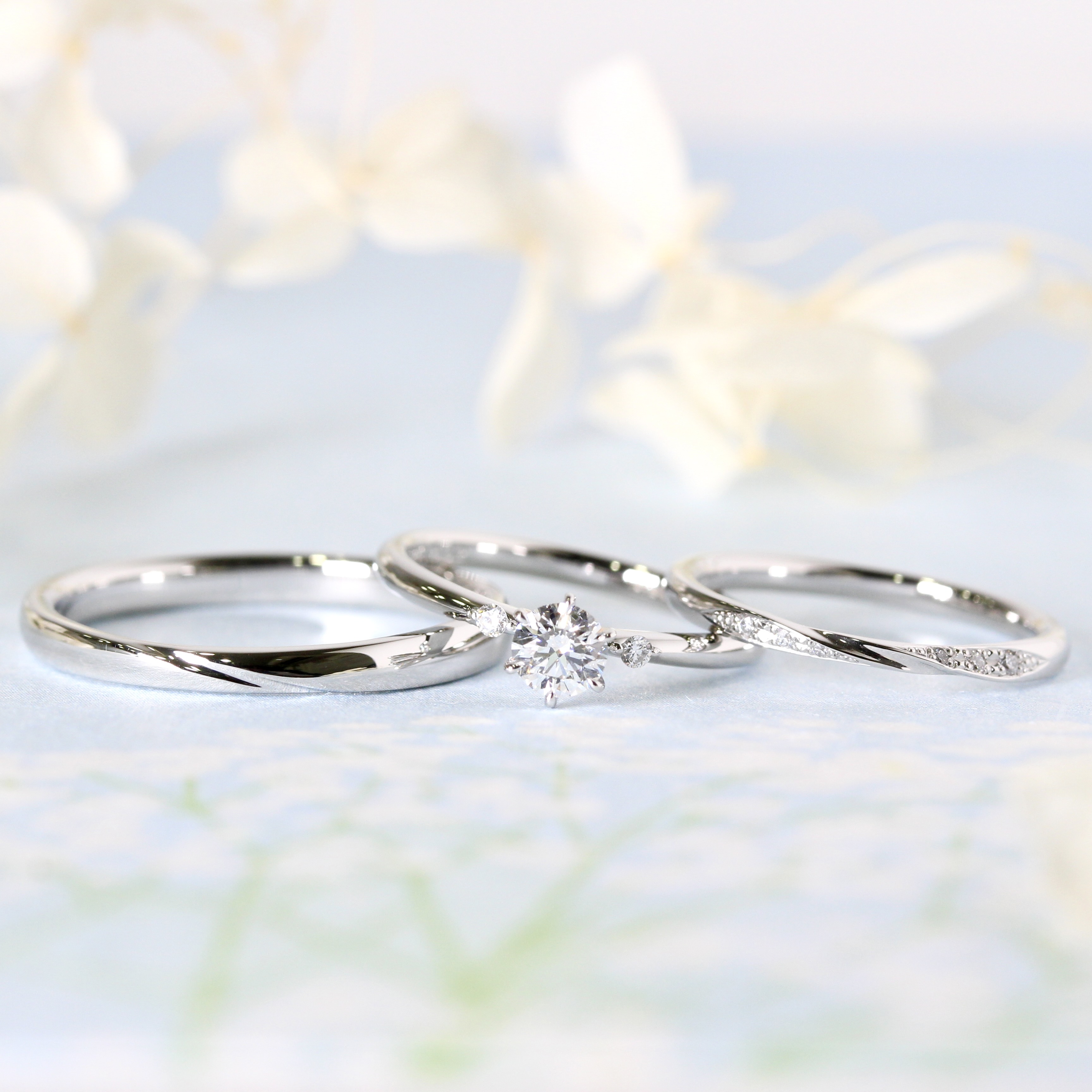 The sentiments the man wished to convey, the thrill the woman felt, and the couple's own originality alike—all are fulfilled in this engagement ring.