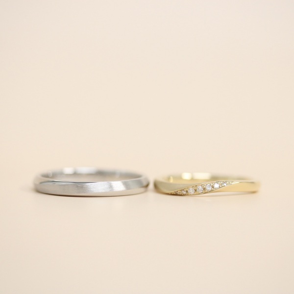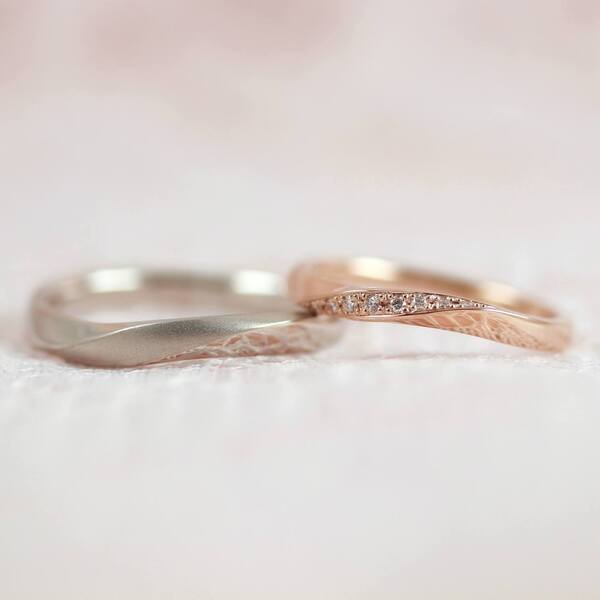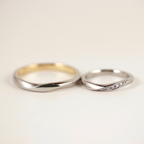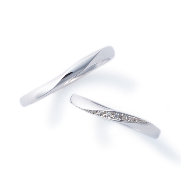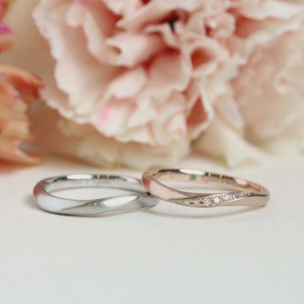 A wedding ring that beautifies the finger with a slender, three-dimensional S-curve, while its gentle wave line conveys elegance.
