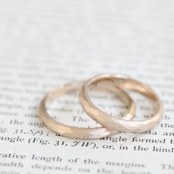 A forged wedding band finished by artisans who meticulously file each facet by hand. The matte finish makes the multifaceted surface blend easily with the hand, offering a subtly unique design.