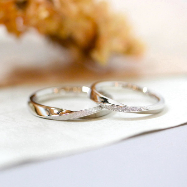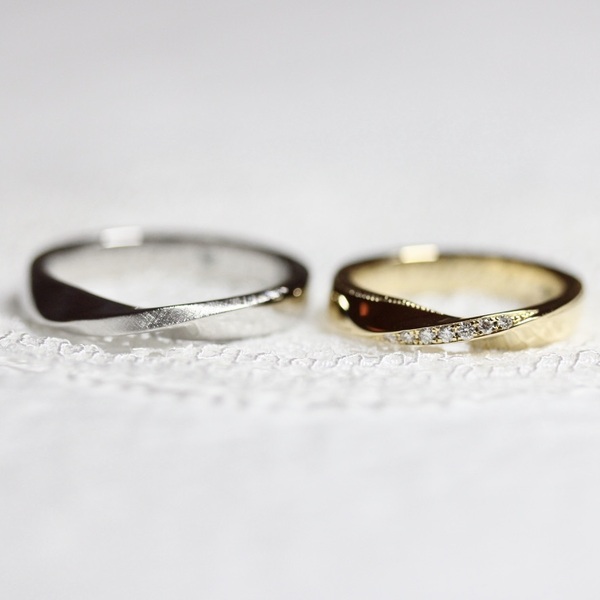 A wedding ring inspired by the Möbius strip, symbolizing eternity, is designed with the hope that the couple's comfortable and enjoyable daily life will continue forever. The central constriction makes the finger appear slimmer and more beautiful.